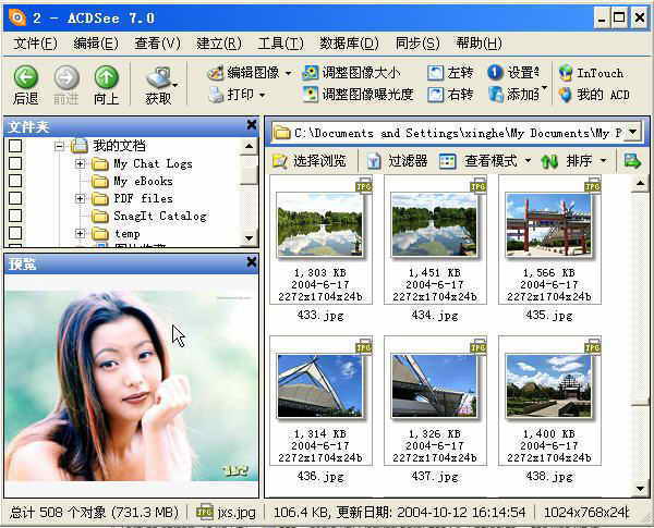 在ACDSee 7.0中可以同时显示多个全屏图像进行比较,以便于我们对自己拍摄的数码照片有更多的了解,决定对组图中的某些图像是否删除,或为以后的拍摄提供参考经验等。
