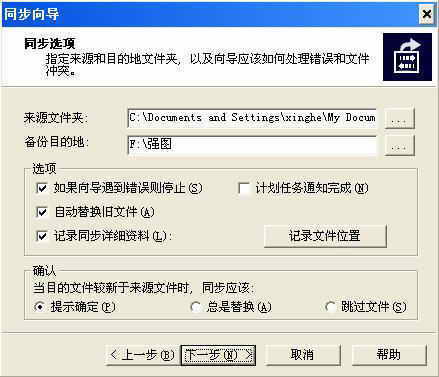 点击主界面菜单上的“同步→建立同步”,即可弹出自动备份向导,按照向导提示就可完成文件夹的备份(图2)。以后当该文件夹中的图片有变化的时候,会自动同步备份到目标文件夹。