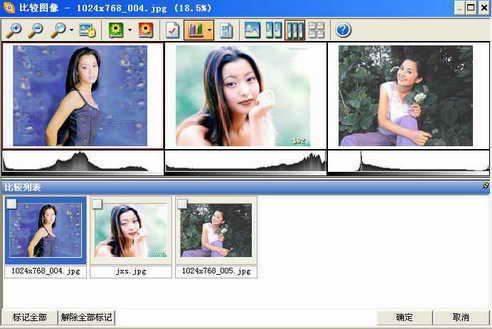 选择多个图像后,在关联灵敏工具栏中会自动出现“比较图像”功能按钮,点击该按钮,即可让所选择的图像显示在一个界面中进行细致的比较(图7)。