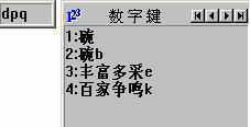查漏补缺(41) 软件世界 徐委峰 · 2004年10月18日 在一次文稿录入过程中,文中有一个词组是“丰富多彩”,而我习惯于用五笔输入法。当时我用的是王码五笔86版,我利用输入法规则从键盘打入dpq时,词组提示如图所示,但结果出来的是“丰富多彩”四个字。于是我又换用王码五笔98版和极品五笔输入法5.5版,词组提示和结果都显示为“丰富多彩”,可见86版五笔这个词组的显示确实有错。