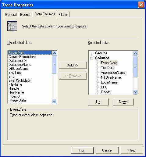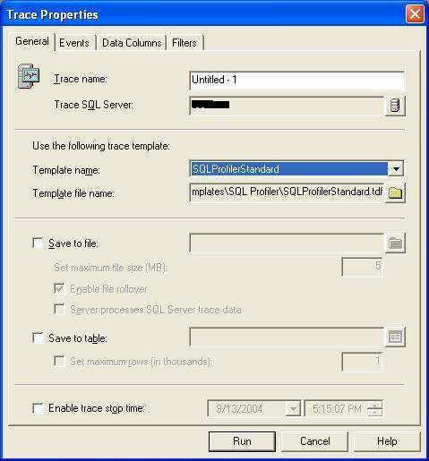 通过设置跟踪选项,可以只记录我们需要的信息。选择新建追踪,登录要跟踪的服务器,就会看到跟踪属性对话框(图1)。