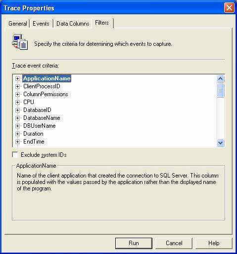 2. DatabaseID指定跟踪的数据库ID号。注意,在SQL7.0中没有DatabaseName,只能指定DatabaseID,你可以在master数据库中运行“select dbid from sysdatabases where name='数据库名称'”来查找。
