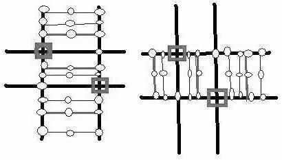 我们把“井”字笔画交叉的4个点中任意两点看成《连连看》中的两个相同图案的话,不难发现,你在游戏中所能走的轨迹几乎完全包含在这个字里了。你再把井字的那两组平行线看成是长长的铁轨,既然是铁轨,当然要有枕木啦。加上间距相等且平行的枕木(如图2),再取那些间距相等的截点作为《连连看》中其他可能出现障碍的图案,则可能的路径形式就那么几种。