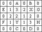 如果把表2中第二行第五列和第四行第三列的两个3作为研究对象,先标记其为X、Y,然后对应穿过这两点画出4条线:AC、BD、EG、FH,组成一个“井”字(表3)。如果要判断从X到Y是否存在无障碍的连线,可以分两步来做:即先看AC、BD之间是否存在通路,再看EG、FH之间。