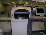 内存生产的第一道工序是刮锡膏,刮锡膏机将内存PCB上需要焊接芯片的地方刮上锡膏。锡膏的作用辅助芯片粘贴在PCB上。