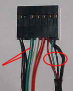 笔者机箱原配的前置接口连接线是一根含四针音频线的连线,而线的另一头是两个3.5mm的音频接头,含四针音频线的那头插入机箱内面板上的引脚接口。