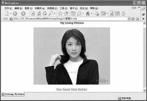 至此一个优秀的主持人打造成功,怎么样?作品保存时,单击“File-save as self-Living Picture ”,随后在弹出的保存对话框中输入该文件的尺寸,单击“OK”即可将该图片保存为exe打包程序。这样以后打开该exe文件程序会自动运行。要想将这个虚拟人搬到网站上去,这时我们应该将它保存为网页格式。保存时在file菜单下选择“save as web page”项,程序将制作的文件保存为一个htm文件和一个lpp文件。点击其中的htm文件即可用IE打开主持人页面,随后单击该页面下面的“Play”按钮,这个主持人就可以开始说话了。在此我们还可以通过Pause Stop Restart按钮对该主持人进行控制。