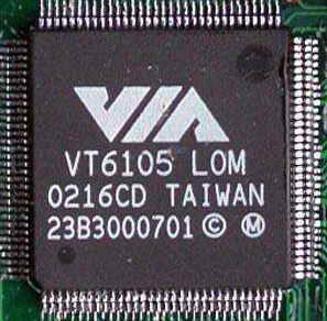 VIA VT6105L是中国台湾地区芯片制造商威盛电子推出的10/100Mbps“三合一”网络控制芯片(如图5所示),该芯片将网络管理功能、媒体存取控制功能以及网络实体层全部整合在了一起,它在规格上符合10/100Mbps BASE-T标准,支持全双工传输工作模式。