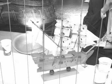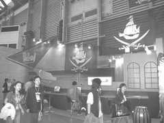 移彩的展台是一艘精致的海盗船