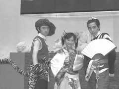 看过众多游戏厂商的俊男美女Cosplay之后,小兔认为最有趣的莫过于光通的展台。《水浒ⅡOnline》的Cosplay几位角色——武松、李瓶儿、西门庆,三人同台摆POSE,这真是个奇怪的组合。灼灼在旁边偷偷问小兔,武大郎和潘金莲到哪里去了呢?