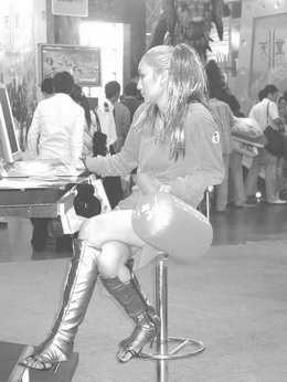 不就是往台下扔礼品的“烧钱”之举么,谁不会?有第一个就有第二个,接下来第三个、第四个……不消多时,每个展台都在往台下扔玩偶、扔充气玩具……小兔看到有个网游厂商的展台MM真强,配合音乐在台上一边扭一边往台下扔宣传单——尽管宣传单太薄,有不少掉在了台上。相对台上这位HIGH过头的展台MM,台下观众反应漠然。这是当然的,你当咱玩家是废品回收站,什么都收啊?