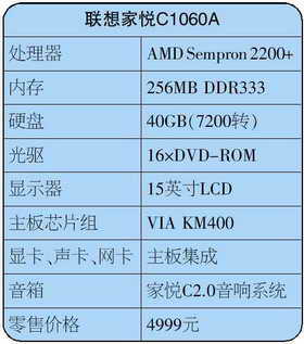 这款产品有一个非常明显的特点就是它采用的是AMD Sempron的处理器。对于内存来说,256MB早已经成为了目前电脑的最低要求了。40GB硬盘在一般配置中已经很少采用了。DVD光驱同样也已经是目前家用电脑配置的一个最低要求。不过要是升级为COMBO就更好了。其实也就是100来元的差价啊!