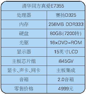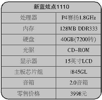“真便宜!就是配置要比我们刚才看过的机器要低不少。”顾哥一边看一边对小怡说,“你看它的CPU用的是P4赛扬1.8GHz,不是赛扬D的,内存也只有128MB,而且不是DVD-ROM,其实它更适合入门级的中小学生使用,价格又便宜,而且是液晶显示器,中小学生最重要的就是保护视力嘛!你用肯定不合适啦,你不是对外观比较挑剔的嘛,呵呵!如果预算在4000元,倒是比较适合买这款。”
