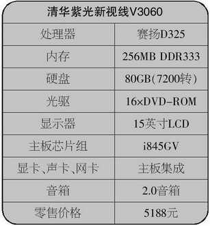 不过清华紫光价格最低的一款液晶电脑新视线V3060的售价略微超出了5000元,报价为5188元。