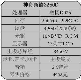 正想着下面该去哪个品牌的专卖店,小顾的手中又被塞入了一张广告,一看原来是神舟的。在广告单的最显眼处就写着神舟的近期主打产品──报价为4998元的17英寸液晶显示器的神舟新禧3250D。