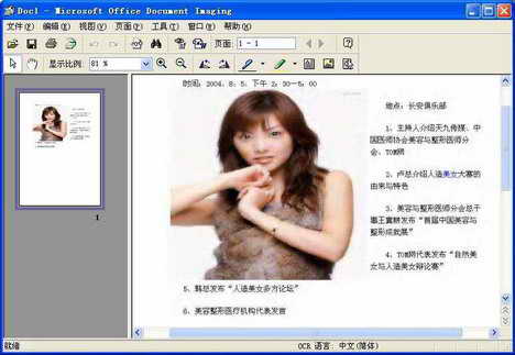 软件评点:很多家庭用户都购置了扫描仪,有了它我们可以轻松地将照片、图片、文本文件扫描到计算机中。可是有的扫描仪附带的扫描软件功能很有限,大多数的扫描仪软件在图片和文字扫描时都是分开进行的,这样也给我们操作带来了麻烦。其实我们要是使用Microsoft Office 2003中提供的Document Imaging组件就可以很轻松地解决以上难题。它提供了强大的扫描文档编辑功能,可以给扫描文档添加文本批注,突出显示文本、手绘文本、图形圈定文本或向文档中插入图片等。并且各项功能都支持鼠标拖曳,可以将图片或文本拖动到文档的任意地方。Document Imaging还提供了一个非常方便的功能就是能提取扫描文档(包括图文混排的文档)中的文本信息,将这些文本信息导入到Word中进行保存,使得图片、文本扫描一次完成。