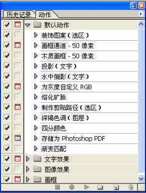 李军还有一个绝招,那就是利用图层的通道结合Photoshop基本工具设计出许多意想不到的理想效果。这些对一个制作者的水平要求可能很高,需要对Photoshop深入了解才能掌握,而高技术含量的简历往往体现出制作者对Photoshop的熟练程度。在处理简历中的相关照片时,也有许多“客户”追求照片的装饰风格,于是李军运用Photoshop中的“动作”窗口栏的内置程序(图2),选择其中的一个选项,点击窗口下的第三个按钮,即箭头按钮,在几秒钟内就能完成诸如给相片加框等特殊效果。而把所需相片处理完后,再使用Illustrator这类图片编辑及排版软件,逐一编辑处理简历中的每页内容,这样精美而具备个性的简历便完成了。