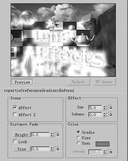 3D知识看点: video post是中的一个强大的编辑、合成与特效处理的工具,使用video post可以将包括目前的场景图像和滤镜在内的各个要素结合在一起,生成一个综合结果出来。而Glow滤镜可以让你在任何被选定的对象周围产生一种灼烧的光晕效果,适用于制作强光火焰、飞行器尾部的喷火效果、闪电效果及爆裂时迸出的火星等特效。