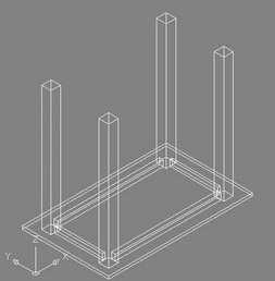 使用同样的方法,再键入@50,50,650回车即可建立桌腿(如图2所示)。