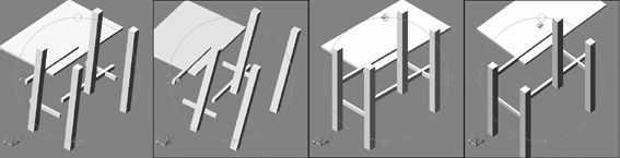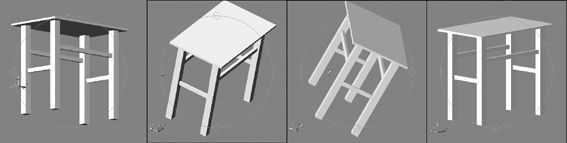在AutoCAD中移动物体是一件很简单的事,那毕竟是平面操作中常用的方法,但是对于多数平面操作人员来讲,在空间中进行移动,特别是在高度方向上进行移动就不是一件容易的事了。大多数的操作是凭着自己的观察进行移动(如图4所示)。键入M回车执行移动命令,选择桌面,回车结束选择,凭观察点第一点,凭观察点第二点结束。用同样的方法移动其他方块。