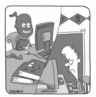 回想到这里,我打算上MSN安慰他一下。MSN上冷冷清清地亮着三两个人,没看到小丁,却看到有“机器人小布”在。看来只有MSN机器人还在默默陪伴着我们这些加班的程序员。于是我点开了和它的对话窗口,输入“joke”想让它给我讲个笑话。可是它回复说:“joke什么啊?我忙着呢!”我定睛一看MSN附带的E-mail地址,“哎,这不是小丁吗?你怎么叫这个名字了?”“我这是麻痹自己,把加班当幻觉!”机器人小布,不,小丁回答说。