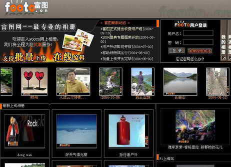 富图网电子相册(http://www.footo.cn)是一个专业的电子相册网站,非常漂亮,有多种相册模板可选择,速度也相当快。它提供50MB的图片存储空间,支持批量上传和在线编辑。