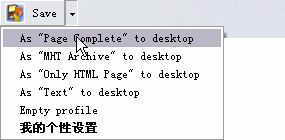 提示:如果经常需要保存不同格式的网页,你可以多设置几个个性保存设置,保存时,只要按下相应的快捷键,或是直接用鼠标选择“Save”按钮中的下拉菜单项中的对应保存设置来达到目的。