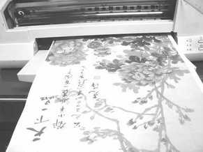 一张宣纸一般面积就达一平方米甚至更大,这样就为拼接大图提供了方便。同时我们也需要注意色彩的防水褪色问题。古代留下来的很多字画之所以成为国宝,其中一个重要原因就是上百年都还有很高的欣赏价值。那么如果打印出来的字画一年不到就因为褪色而“惨不忍睹”那当然会很遗憾。使用颜料墨水,就可以比较好地解决褪色问题,至于颜料墨水打印后的防水,那更不用担心,就是在水中泡上半天都不成问题。另外,所有的喷墨打印机都可以打印宣纸,但是能够比较好地使用颜料墨水的打印机主要以EPSON的几款机型为主,因此笔者建议宣纸上打印最好使用EPSON打印机(笔者在打印宣纸时使用过830、R210等7款EPSON机型)。选用颜料墨水连续供墨系统不但可以实现防水防褪色,而且使用成本也低。一般打印每平方米的墨水纸张花费不足10元。