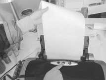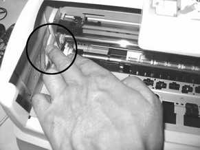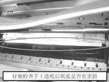 打印机进纸技巧:宣纸装入打印机内比其他纸张要麻烦些,裁切成长纸条就是尽量地减少进纸次数。笔者这里总结出了一个进纸的技巧:宣纸进纸尽量不要使用打印机的自动进纸功能,而应当使用手工进纸和调整。具体做法是:将纸张靠打印机进纸器右面放好并用手扶正,按下打印机面板的进纸键(图6)。让打印机将纸张卷入到打印位置进行打印等待,这个时候打开打印机面盖仔细检查进入的纸张是否有歪斜(图7)。如果产生歪斜就要拔掉打印机电源,用手去拨动打印机左面的大齿轮使纸张倒退出去(图8)。注意不能关打印机面板上的电源按键,因为打印机在电源关闭的同时会将装入的纸张送出来,而歪斜的纸张送出时会被卷起褶皱无法再次使用。退出纸张后再打开打印机电源按照前面的方法手工进纸,确定进纸正确后再实施打印工作。