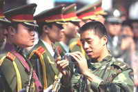 瞬间的决定(43) 数码时尚 2004年11月1日 头等奖:军乐团的摄影师 评委会意见:人物的表情抓拍得很到位,使用大光圈,背景虚化得不错,让片子显得很生动。 佳能G5,光圈F2.8,快门1/1000秒 优秀奖:赛马 香港的跑马场每年要举行了大约700场比赛,赌博金额达到50亿英镑,是非常热门的运动。 索尼P72,光圈F5.6,快门1/800秒 优秀奖:母子 这只蟹妈妈,大肚能容,生的小螃蟹还真不少。 佳能A70,光圈F2.8,快门1/1000秒