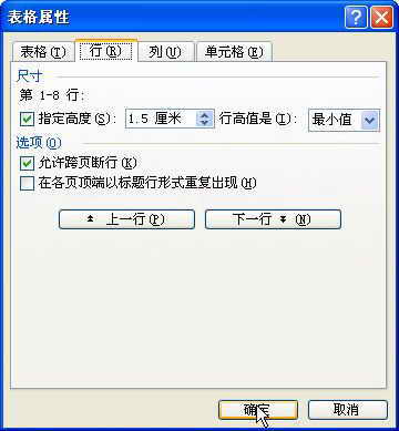 接下来进行高度和宽度的调整。选中整个表格右击鼠标,这时在弹出的“表格属性”窗口中分别将“行”及“列”高度设置为“1.5厘米”和“4厘米”,然后点击工具栏上的“居中”按钮将整个表格居中(图4)。