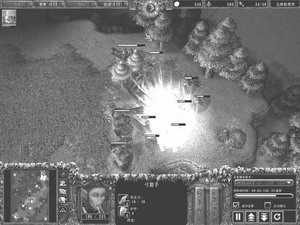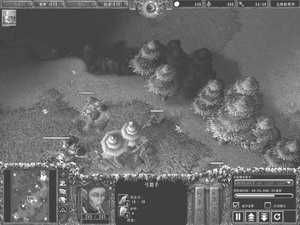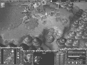2.(见图7)大法师召唤完毕后立刻学习召唤水元素技能,同时持续召唤水元素。此后将4~5个农民变成民兵一起进攻分矿。大法师、步兵(1~2个)和水元素(2个)首先攻击食人魔,民兵攻击一个树魔,最后再攻击树魔牧师——这样可以只用一个水元素的代价就打下分矿。