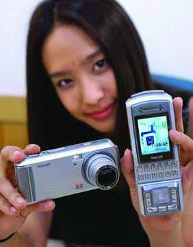 进入2004年下半年以来,手机摄像头的“像素”之争再次成为业界的焦点。继LG发布国内首款具备300万像素的拍照手机C950后,三星在本次通信展上,展示了世界第一款500万像素拍照手机SCH-S250(图2)以及世界第一款配备3倍光学变焦的320万像素拍照手机SCH-M339。SCH-S250拥有500万像素的摄像头、16万色QVGA TFD-LCD显示屏、10cm微距拍摄能力、1/1000秒的快门速度,而SCH-M339则具有3倍光学变焦功能,焦距从5.88mm到17.4mm,涵盖小广角到中焦的最常见的拍摄焦距。同时该镜头采用了可变光圈、TTL测光方式、ISO100/200/400感光度调节等功能,这些也是只有在中低端数码相机中才能见到的功能。