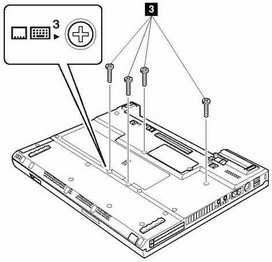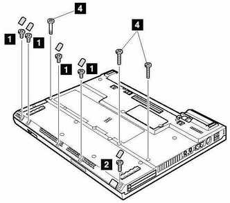 按照硬件维护手册的说明,先把电池从机身上取下,接着对照机器底部1~4号螺钉的图示标签(图1),用螺丝刀把4颗3号螺钉卸下,然后用一字头螺丝刀沿空格键与左腕托之间的缝隙撬起键盘,把键盘与主板相连接的排线取下,即可把整个键盘卸下。