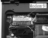 取下键盘后,可以看到位于机身左侧靠近显示屏处的CDC插槽上安装的是Modem模块(图2),卸下两颗螺钉并拔掉Modem卡数据线,这样Modem模块就被取下了!