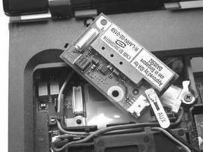 笔者曾经给IBM X23 加装过蓝牙天线,把天线加装在机器内部时,信号不能令人满意,最后借用了X23内置的无线网卡的天线,才得到了非常理想的信号,而且对无线网卡的信号接收基本没有影响。有了上述经验,于是打定主意:在T40上也采取为蓝牙适配卡借用无线网卡天线的方法。