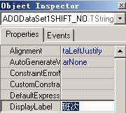 2.选择第一个字段,在其属性页的DisplayLabel中输入中文“班次”。如图4。同理,依次选择各个字段,修改其DisplayLabel属性。