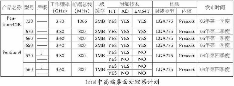 随着Intel计划的深入,现有的5XX系列将会退居到中端市场,成为该市场的主力选手。在未来的中端市场,5XX会存在两种不同版本的产品──E0制程版本和普通版本。E0版本与现有的产品不同之处在于:加入了防病毒技术和防止意外烧坏技术。E0版本的处理器内部拥有感温回路,当出现温度过高时,处理器会降低频率(通过调节倍频)和降低处理器输入电压,也就是通过功耗的减少来使温度降低。当温度恢复正常,频率和电压值也都会恢复正常。需要说明的是,该两项功能都需要BIOS的支持。在其他特性方面,与现有的5XX系列相同。可以预料,5XX+i915P/G将会成为主流平台的种子选手。