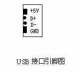 找来改造所需的材料:一根USB电缆和一个电源适配器的插头(图1),还有电烙铁和松香等工具和助焊材料。改造的过程很简单,从USB端口的引脚定义可知,它是由四根引脚组成(图2)。电源(+5V)和接地GND分别位于端口的两端,中间的两根引脚为传输数据的D+和D-。