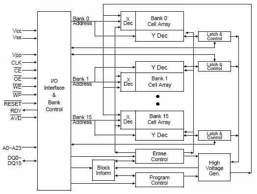 图2是三星某系列NOR型闪存芯片的资料。从图2就可以看出这是一个非常类似于内存的架构,甚至有Bank这样的概念直接出现。从容量结构上来讲,NOR是一个并行的架构,单芯片提高容量较为困难,参考内存的结构就类比可知具体情况,这里就不再赘述了。