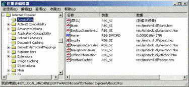 提示:AboutU RLs子键右边窗口显示的其实是IE中内置的几个特殊网页。其中的blank就是打开一空白网页;Mozilla就是打开蓝屏页面。想把IE变成蓝屏页面,在地址栏里输入“about:Mozilla”回车,IE马上就会变脸。about后的冒号是要在半角状态下输入的。在所有以IE为内核的浏览器中,显示效果都会一样。