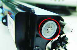 1700n打印机采用硒鼓和碳粉盒分离设计,硒鼓和碳粉盒都可以单换。在取鼓粉时,直接拉出鼓粉固件就可以把硒鼓和碳粉盒一起取出;只要按住鼓粉固件左边的黑色按钮,就可以取下碳粉盒。碳粉盒上有一个加粉孔(图4),用户可以自己加碳粉,而且操作也非常简单。就算是从未给打印机加过碳粉的用户也可自行完成。
