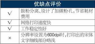 由于这台打印机拥有独立的200MHz处理器,比没有处理器的打印机的处理时间明显缩短,大大提高了打印效率。一个大小为9.4MB的图文混排的Word文件,共11页,从处理到打印完成只需47秒,每页的处理和打印时间仅为4秒,这比市场上主流的黑白激光打印机都要快得多。试用中小编发现,这台打印机用网络接口打印,速度比USB接口打印要快40%以上。因此小编建议打印量较大的办公用户使用时最好采用网络共享进行打印。