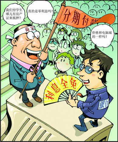 首先,提供按揭购买的笔记本电脑价格都比较高,超出了大多数学生的经济承受能力。而在一般情况下,按揭购买笔记本电脑的前提是需要持有一张指定银行的信用卡,而且要求这张信用卡是可以透支的类型(不是一般的银联卡),这就要牵涉到严格的担保手续。对于没有经济实力、没有参加工作的学生来说,这样的要求显得有点苛刻。而仅仅是为了按揭购买笔记本电脑而去办卡的话,那么按照银行的规定,如果在其后一段时期内没有发生任何信用交易,则必须支付信用卡的服务年费。这可是一笔不小的潜在开支,同时这样也失去了分期付款的意义。