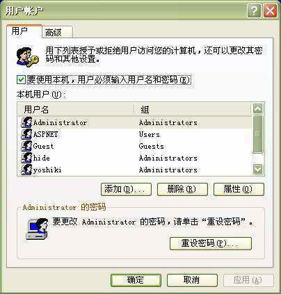 点击“开始→运行”,在弹出的运行窗口中输入“rundll32.exe netplwiz.dll,UsersRunDll”(注意大小写),点击“确定”按钮,即可打开“用户帐户”窗口(如图)。