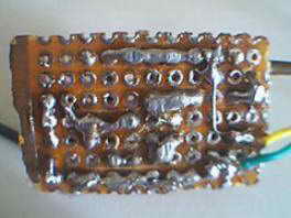 准备好元件以后,就可以开始动手了。我是用万用板进行焊接的(成品如图2和图3)。