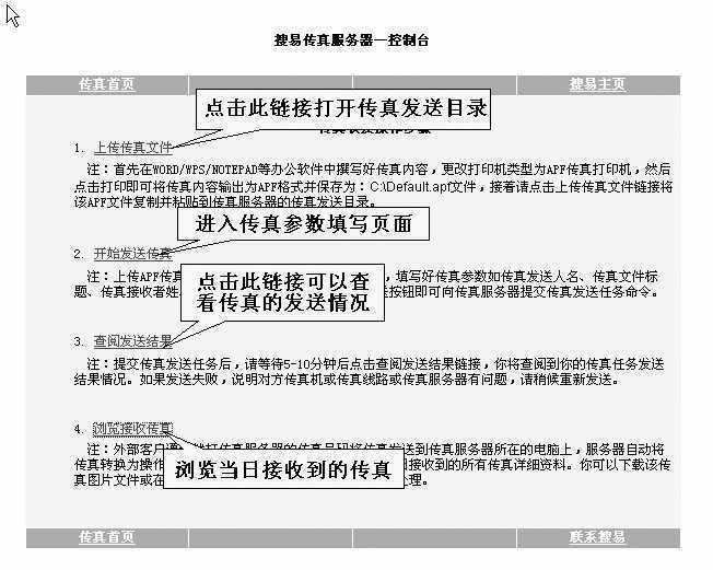 果冻提示 所有的传真收发任务都是通过充当服务器的那台电脑(也就是经理室的电脑)上的Modem和电话线完成,客户端的收发控制都是通过IE浏览器进行。