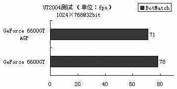 从性能测试的情况来看,GeForce 6600GT AGP版基本与GeForce 6600GT相当,即便是用桥接方式实现的AGP,理论上带宽大不如PCI-E,但也没在实际的游戏测试中表现出来。可以说,在目前游戏和软件应用的环境下,GeForce 6600GT AGP版与GeForce 6600GT性能基本相同。