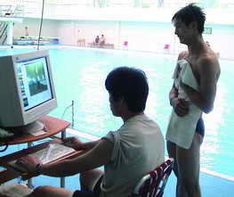 张勇东和计算所的同事们从2002年就开始研究的跳水视频分析系统正好能弥补这个缺陷。他告诉记者,这套系统采用高质量数字视频采集,而且视频采集和动作回放可以同步完成。“运动员完成一个动作后,立刻就可以在泳池边的电脑上看到刚才入水的全套动作单帧定格回放,动作有什么差错一目了然。”除此之外,电脑还能将动作分解,实现单帧定格回放、不同速率回放、反向放映等,力争让运动员跳水的每一个细节臻于完美。
