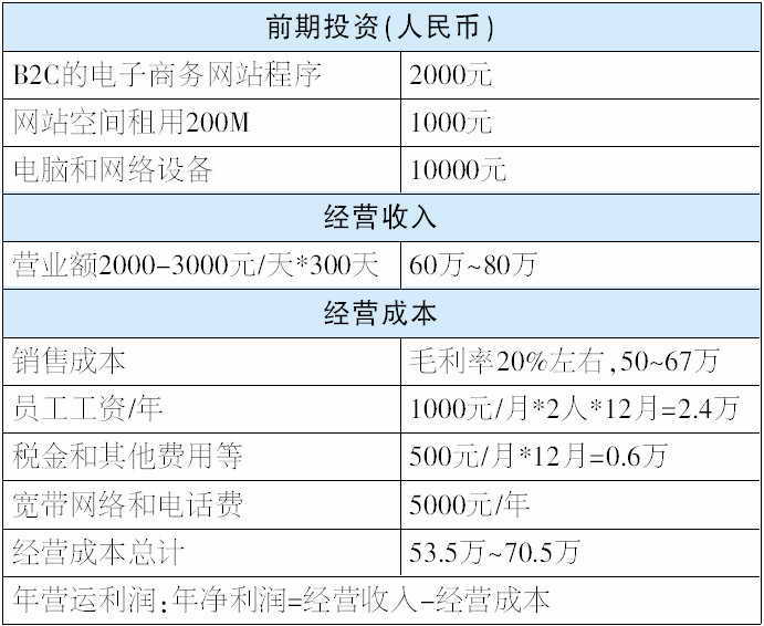 网上网球店投资利润分析(仅供参考):